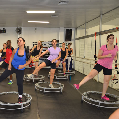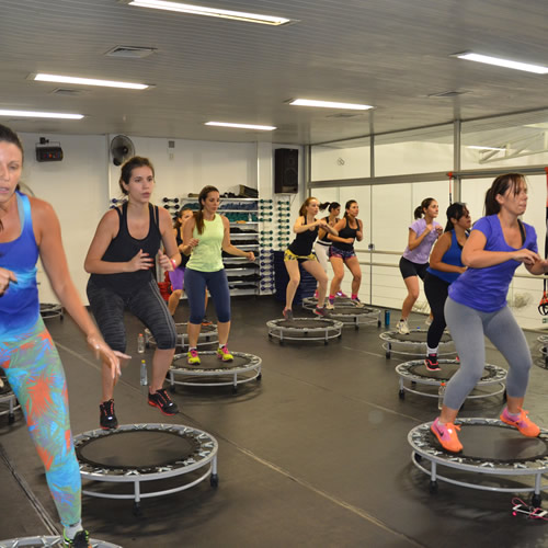 Aula com alto gasto calórico onde é utilizado um mini trampolim. Tem a função de tonificar os músculos da perna, glúteo e abdômen.