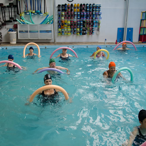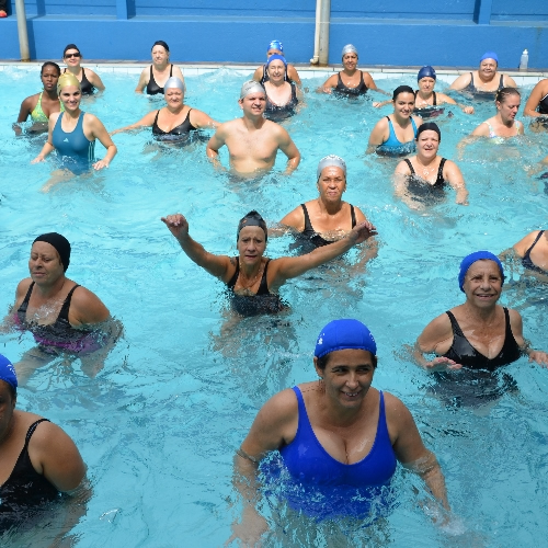A hidroginástica é uma atividade física que visa melhorar a capacidade aeróbica e cardiorrespiratória, resistência muscular, força muscular e flexibilidade. A aula é desenvolvida através de exercícios que exercem menor impacto nas articulações devido às propriedades da água, como também uma sensação de conforto.